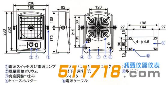 日本春日(KASUGA) KD-410 直流送風式除電器采用大風量型的AC風扇、zui適合對遠距離的除電。