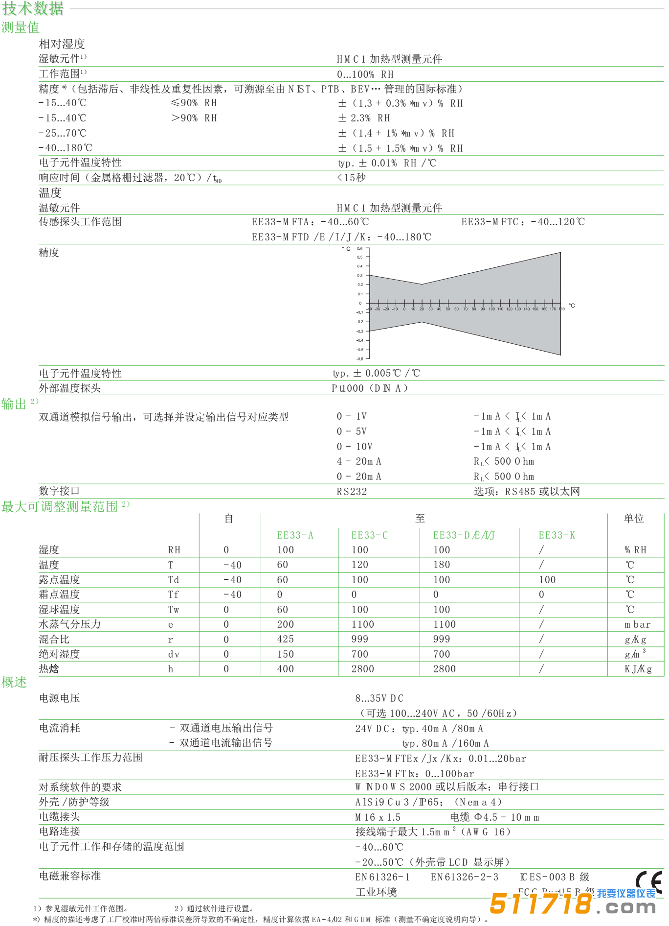 在短時的環境結露或工藝過程中有嚴重的化學污染,甚至測量環境達到100bar壓力和持續的高溫,EE33系列