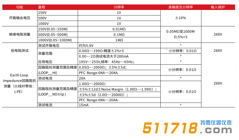 250V/500V/1000V直流電壓絕緣電阻測(cè)試