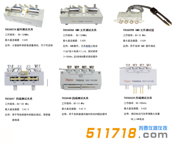 TH2838系列配合專用材料測試夾具TH26077以及上位機軟件可方便、準確的測量材料在不同頻率下的介電常數。