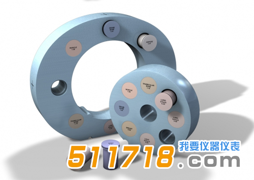 模體由PlasticWater?制成的嵌套圓盤組成。嵌套磁盤允許模擬頭部和腹部幻像配置。八個不同的組織等效插入物可以定位在掃描場內的17個不同位置。模體的幾何形狀還使用戶能夠從*心軸獲取測量偏移。
