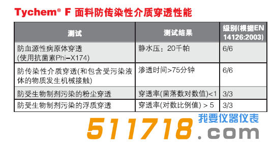 以*高性能級別通過歐標EN14126: 2003生物制劑防護測試;