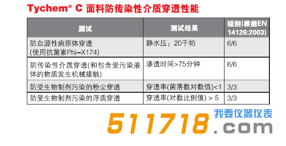 以*高性能級別通過歐標EN14126:2003生物制劑防護測試;